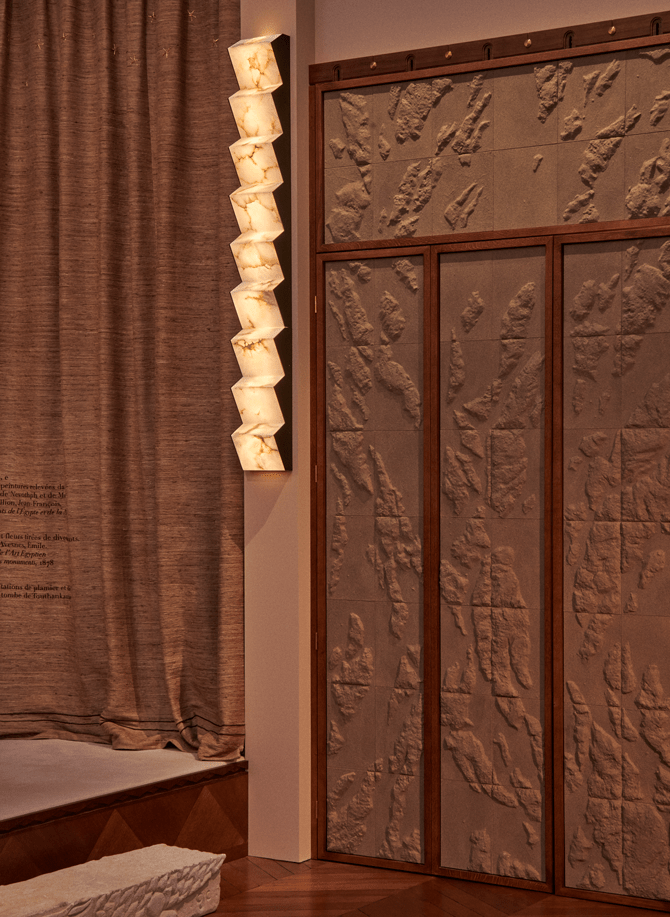 L’applique DOUM, dessinée par le Studio OUD pour la galerie MCDE, rend hommage au BLOC AUVENT de Pierre Chareau en en prolongeant la silhouette dans un élan vertical.