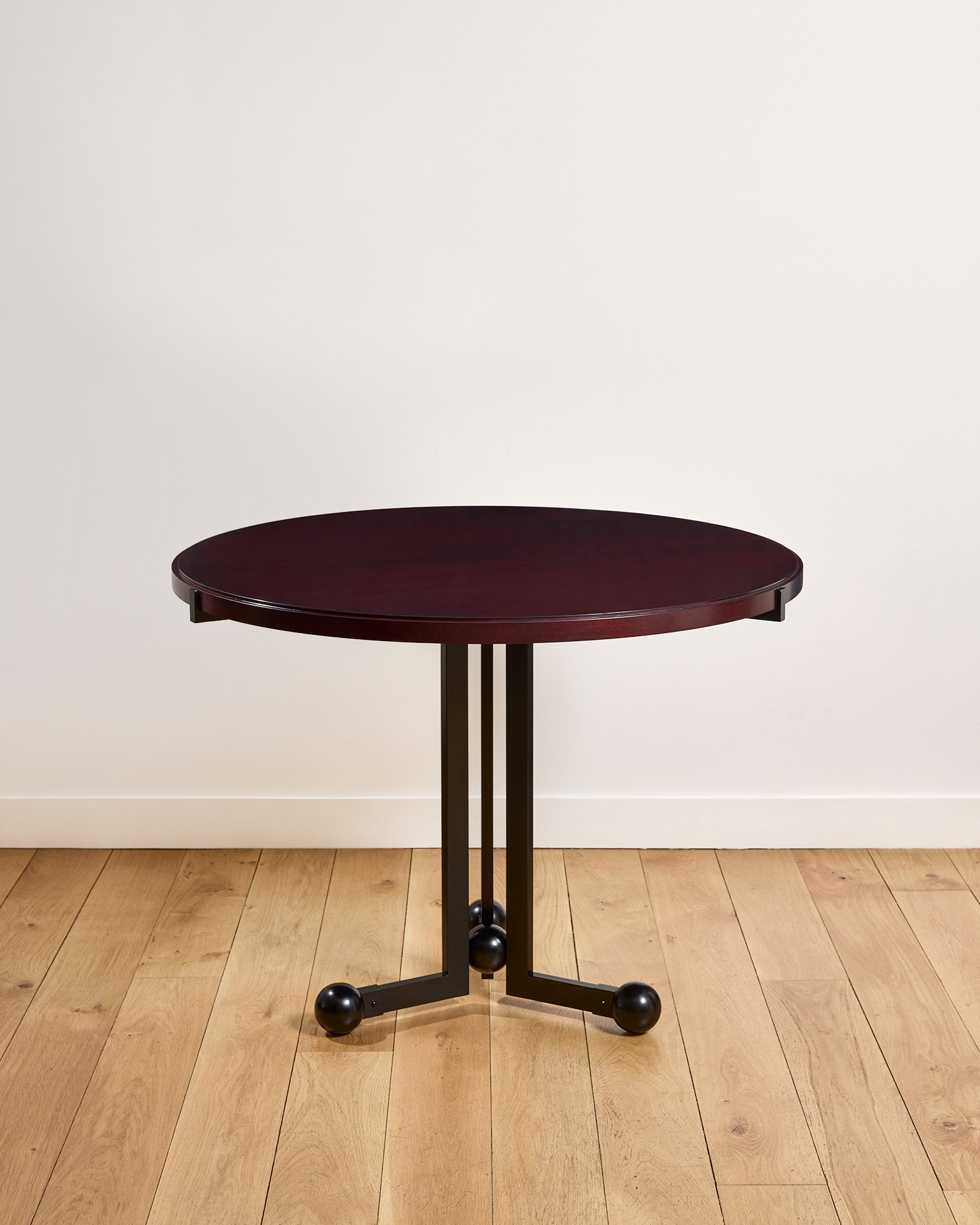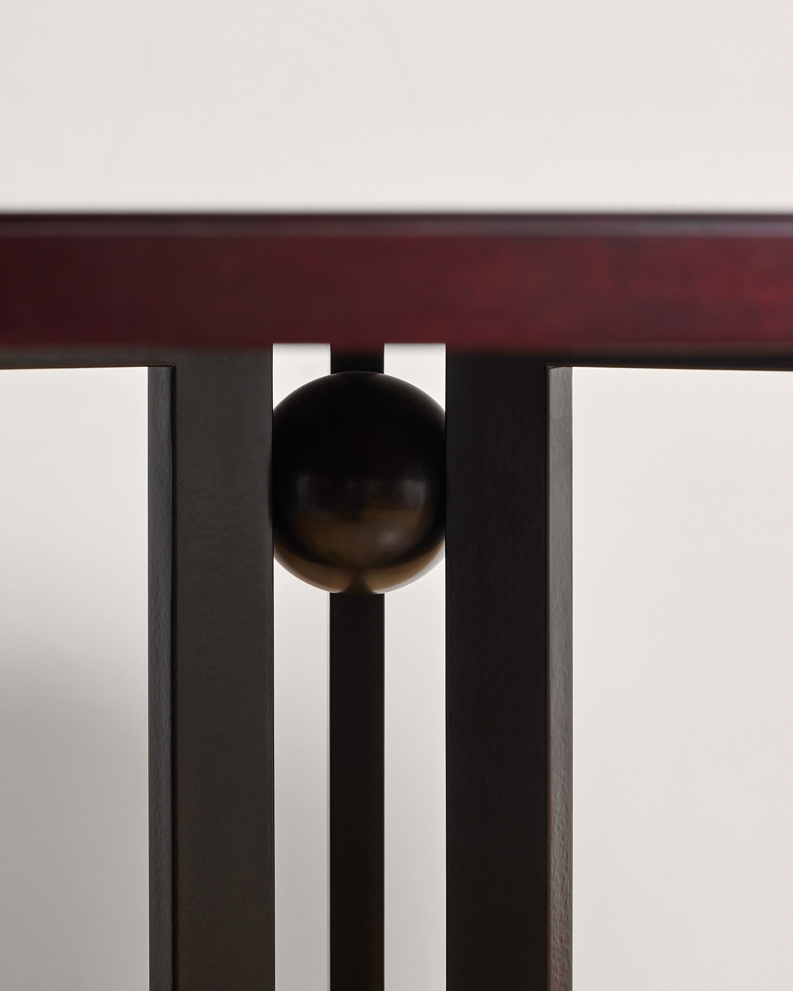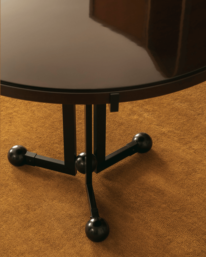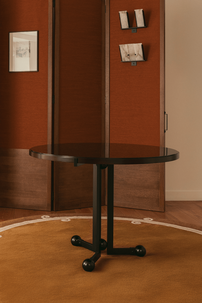 La table ONDE, réinterprétation par le Studio Biehler-Graveleine pour la galerie MCDE, rend hommage à la table à boules iconique de Pierre Chareau et en réinterprète la structure à travers un piètement métallique sculptural rythmé de sphères.